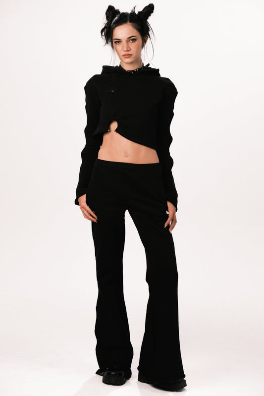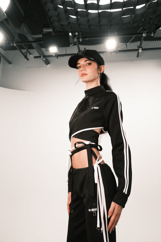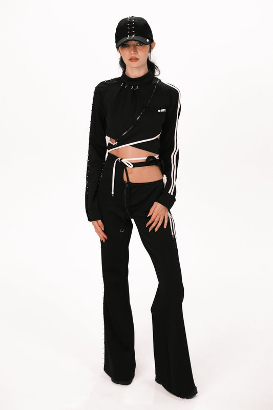 BLACK WRAP TIE ASYMMETRICAL TRACK JACKET